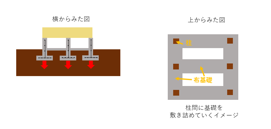 ②固くしっかりした地盤に直接基礎を作る「直接基礎」