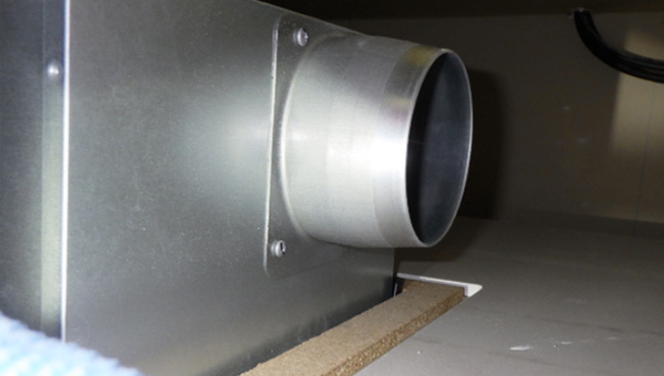 この写真では、ユニットバスに取り付けられている換気扇とダクト(配管)が接続されていません。このまま換気扇を作動させると、浴室内の湿気を含んだ空気がそのまま天井裏に排気されてしまい、あっというまにカビだらけになります。