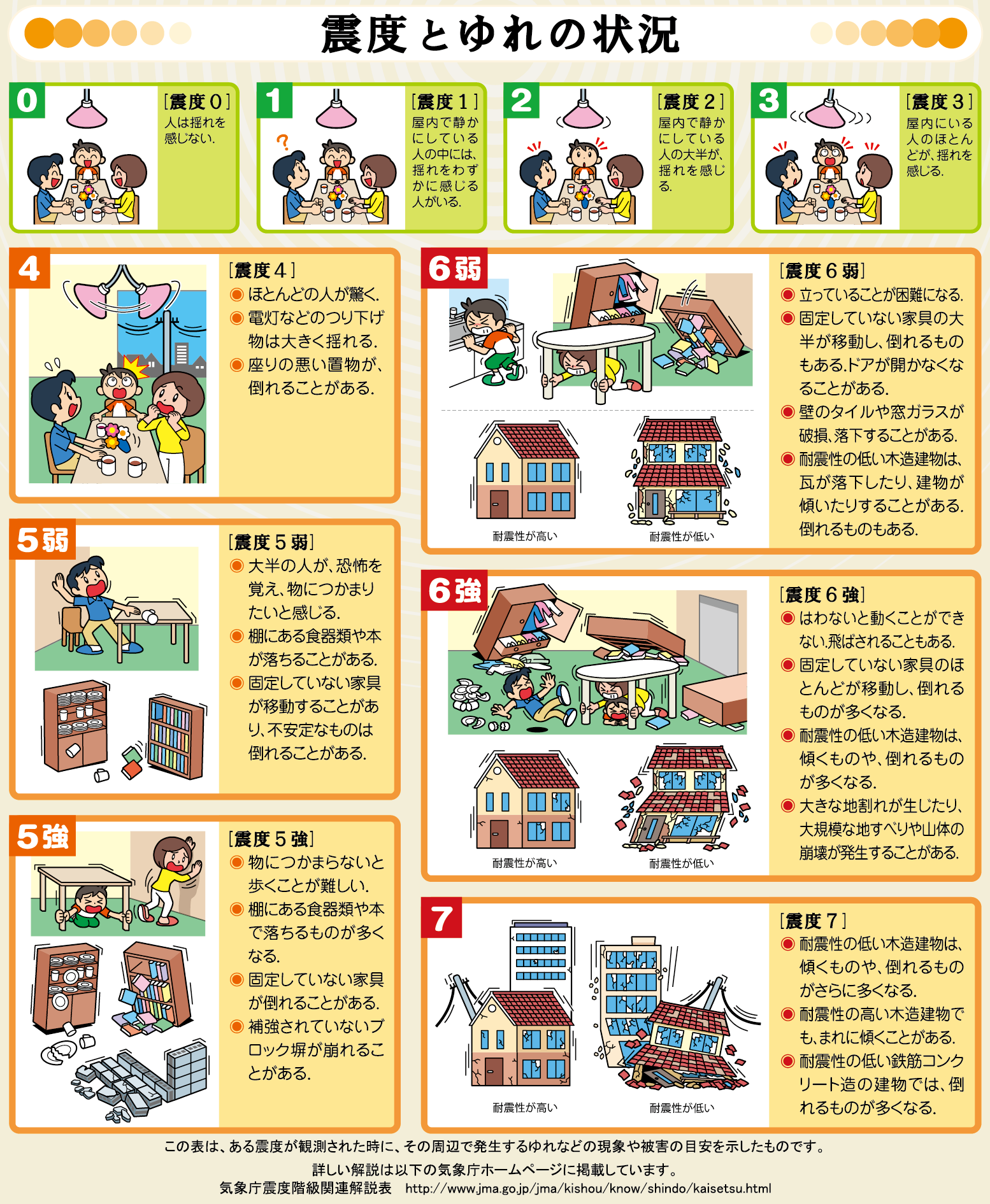 気象庁震度階級による震度とゆれの状況(地震本部HPより)