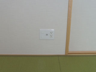 次の写真ではわかりにくいですが、まっすぐ正面から見ると、コンセントが傾いて取付けられています。
